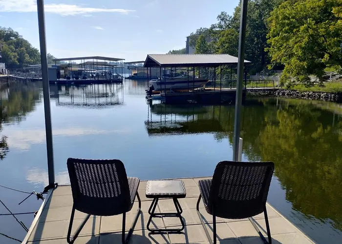 Situated 3.6 km from Celebration II, Newly Updated In A Private Cove, With Firepit, Flat Lawn, Dock, Boat Slip & Kayaks In Osage Beach Lake Ozark villa invites guests to relax at a patio.